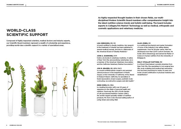 As highly respected thought leaders in their chosen fields , our multidisciplined Modere Scientific Board members offer comprehensive insight into the latest nutrition science trends and holistic well-being . The board includes experts in Collagen / HA Matrix ® Technology as well as medical , orthopedic and cosmetic applications and veterinary medicine .