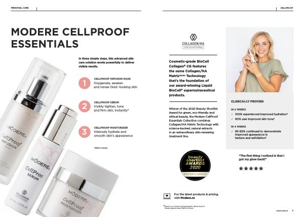 † Based on a 4-week long independent clinical study of female subjects using CellProof Serum www . modere . ca 31